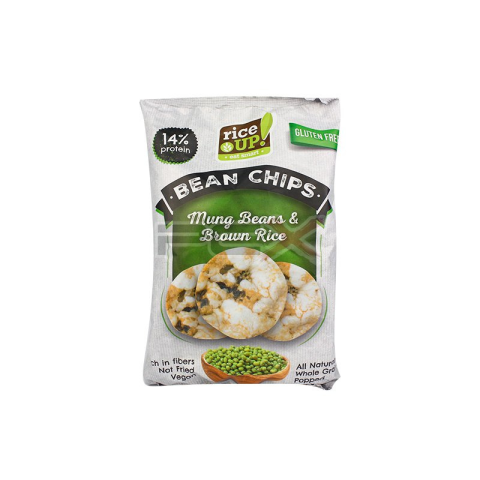 Teljes kiőrlésű barna rizs chips mungóbabbal. Gluténmentes. Nem olajban sült.Összetevők: teljes kiőrlésű barna rizs(55%), mungóbab (25%), napraforgóolaj (12%), köles, rizsfehérje, sókomplex (0,9%, amelyből nátrium-klorid 0,56%). Átlagos tápérték 100 g