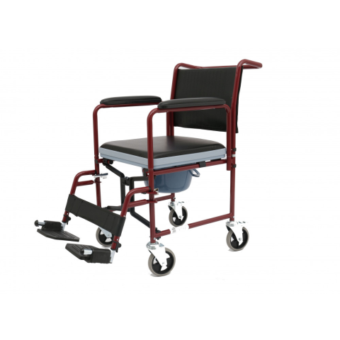Az GM 4021/G gördíthető szobai WC mozgáskorlátozott és járásképtelen betegek részére ajánlott gyógyászati segédeszköz. Váza hegesztett acélcső, a háttámla, kartámasz és az üléstakaró kárpitozott (PVC). Az ülés alatt hátulról cserélhető a vödör, amely a fe