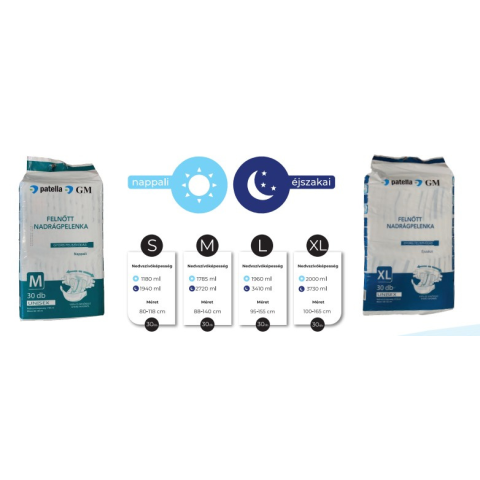A GM felnőtt pelenkák úgy lettek tervezve, hogy hatékonyan felszívják a nedvességet, és megtartsák azt, ezzel megakadályozva a nedvesség szivárgását. Használata alkalmas lehet közepes vagy súlyos inkontinencia esetén, fogyatékkal élő, vagy ágyhoz kötött b