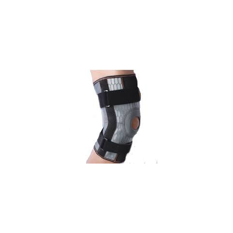 A GM-K8 zárt térdortézis jól szellőző, hálós anyagból, 2 darab kéttengelyes oldalsínnel és patella nyílást megtámasztó gyűrűvel készül. Két széles, nem rugalmas tépőzáras szíj segíti a megfelelő rögzítést. Szürke, egyedi mintázata attraktív megjelenést kö