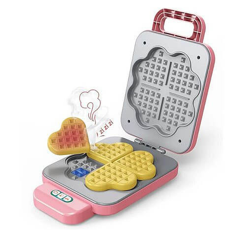 Gofrisütő Készíts gofrit a vendégeknek! A Gofrisütő egy rózsaszín nyitható tetejű elemmel működő gofrisütő négy darab gofrival, bekapcsolás után a gofrisütő a benne lévő ételt valósághűen átszínezi, nem melegíti fel, csengetéssel jelzi ha elkészült A