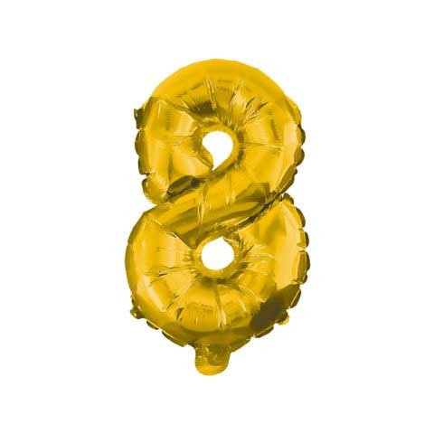 8-as Gold szám Fólia lufi 33 cmA léggömb csak levegővel történő feltöltésre alkalmas, hegesztést igényel.A lufi tartó pálca + csésze külön megvásárolható áruházunkban (DPA9911929).Anyaga: fólia