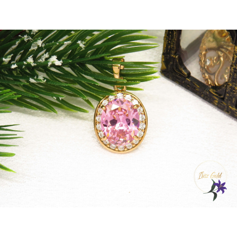 Antiallergén kerek rózsaszín köves medál körbe cirkónia kövekkel díszítve Szin: 18K Méret: 22x14mm