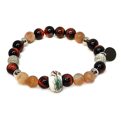 1 kép Golden Fiesta – Napkő, hegyikristály és tigrisszem ásvány karkötő dobozban