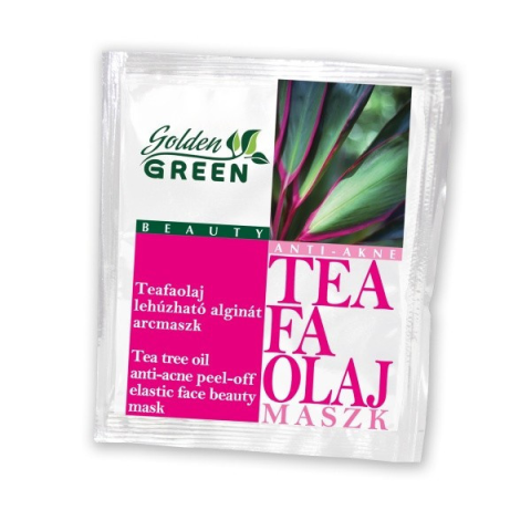 Golden GREEN Teafaolaj Lehúzható Alginát Maszk pattanások ellen 6gr STE-02010711012925008 TEAFAOLAJ ANTI-AKNE lehúzható alginát arcmaszk 6 g Gyulladáscsökkentő,szabályozza a faggyútermelést,tisztítja és összehúzza a tág pórusokat,gátolja a pattanások