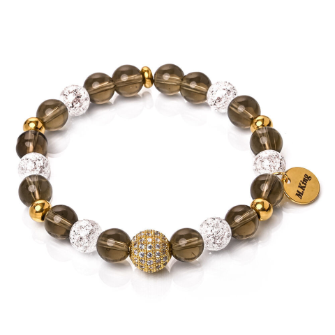 1 kép Golden Smoke – Füstkvarc és hegyikristály ásvány karkötő dobozban