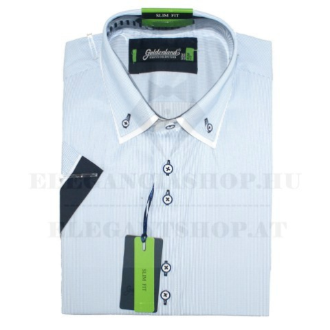 1 kép Goldenland rövidujjú slim ing - Világoskék csíkos