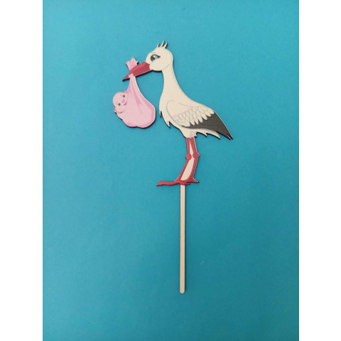 1 kép Gólya lány babával fa tortabeszúró,tortadísz