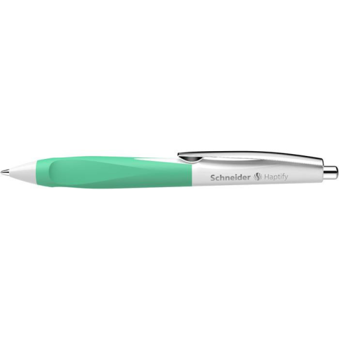 Golyóstoll, 0,5 mm, nyomógombos, fehér-menta színű tolltest, SCHNEIDER "Haptify", kék toll termékleírás