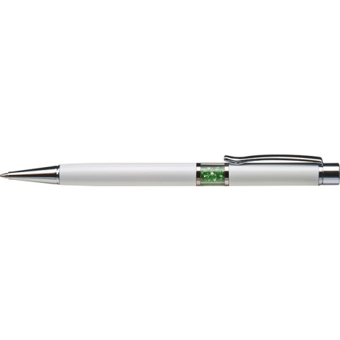 Golyóstoll, fehér, középen peridot zöld SWAROVSKI® kristállyal töltve, 14cm, ART CRYSTELLA