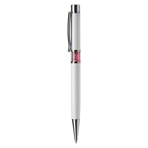 Golyóstoll, fehér, középen rózsaszín SWAROVSKI® kristállyal töltve, 14cm, ART CRYSTELLA® toll termékleírás