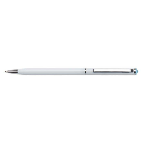 1 kép Golyóstoll, fehér "SLIM", aquakék SWAROVSKI® kristállyal, 13 cm, ART CRYSTELLA®
