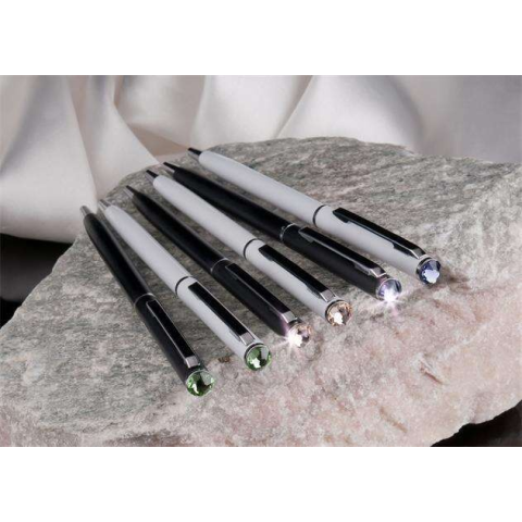 Golyóstoll, fehér "SLIM", peridot zöld SWAROVSKI® kristállyal, 13 cm, ART CRYSTELLA® toll termékleírás