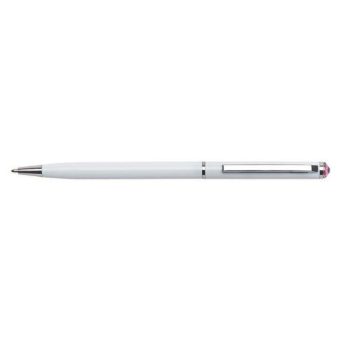 1 kép Golyóstoll, fehér "SLIM", rózsaszín SWAROVSKI® kristállyal, 13 cm, ART CRYSTELLA®
