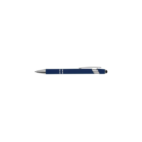 Golyóstoll fém touch pen érintőképernyőhöz s.kék Fém gumírozott golyóstoll, ezüst színű kiegészítőkkel, mintázott markolattal, érintőfunkcióval, kék színű tintával.