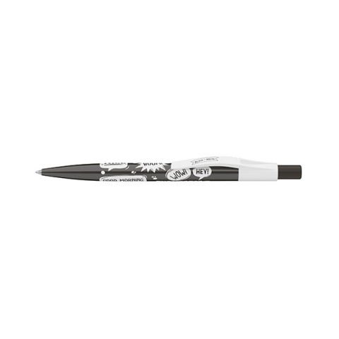 Golyóstoll ICO Black and Write fekete Szlogennekkel díszített nyomógombos mechanikával működő golyóstoll 0,8 mm-es kék színű golyósbetéttel.