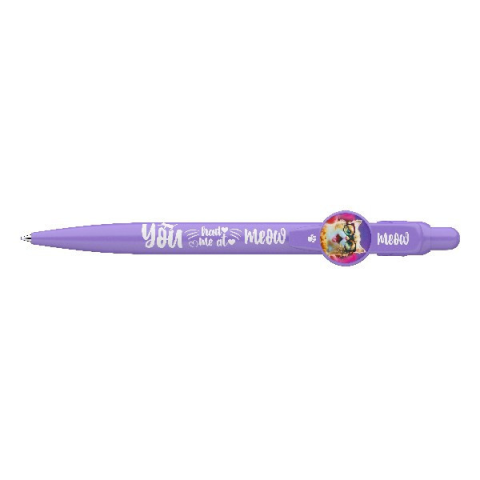 Golyóstoll ICO Cats pasztell lila Cicás motívumokkal díszített nyomógombos mechanikával működő golyóstoll 0,8 mm-es kék színű golyósbetéttel.
