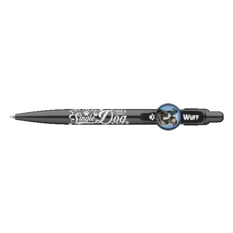 Golyóstoll ICO dogs fekete Kutyás motívumokkal díszített nyomógombos mechanikával működő golyóstoll 0,8 mm-es kék színű golyósbetéttel.