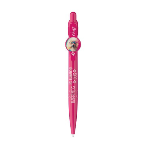Golyóstoll ICO Dogs Z10 pink kutyás motívumokkal díszített nyomógombos mechanikával működő golyóstoll0,8 mm-es kék színű golyósbetéttel