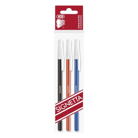 Golyóstoll ICO Signetta 0,7 3 darabos Közkedvelt, eldobható golyósiron biztonsági kupakkal. 3 színben.