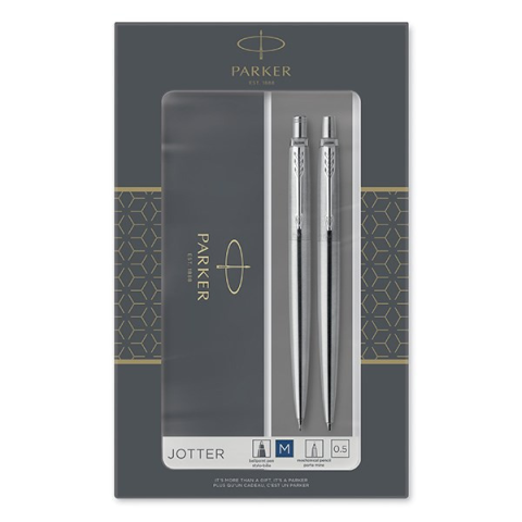 Golyóstoll készlet PARKER Jotter golyóstoll + nyomósiron ezüst ezüst klipsz A JOTTER az igazi klasszikus, a legnépszerűbb PARKER modell. Minőség, tartósság, nagyszerű ár/érték arány. Mechanikus ceruza és golyóstoll, rozsdamentes acél test. Most díszcs