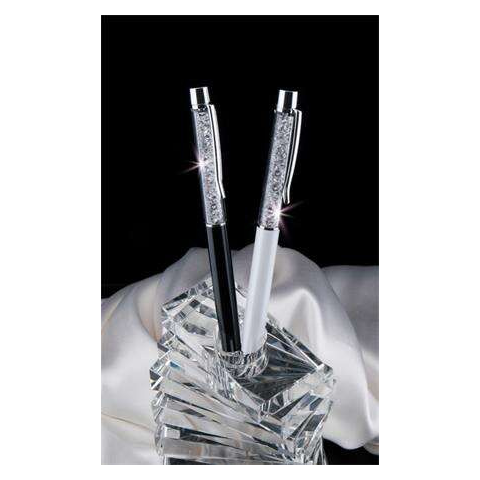 1 kép Golyóstoll, krémfehér, felül fehér SWAROVSKI® kristállyal töltve, 14 cm, ART CRYSTELLA®