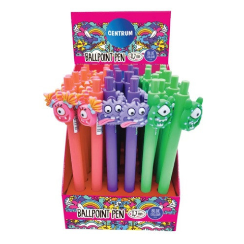 Golyóstoll nyomógombos Centrum Monster 0,7 mm kék szörny figurás eldobható golyóstoll többféle színű tolltest (a szín nem választható) írásvastagság: 0,7 mm írásszín: kék