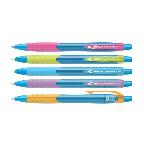 Teljes Golyóstoll nyomógombos vegyes színek 0,7mm Antilop Super Smooth írásszín kék termékleírás