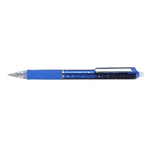 Radírozható 0,5mm-es vonalvastagságú nyomógombos golyóstoll. Műanyag testel és csillag mintázattal. A radír a toll végén található. A tollbetét cserélhető. Íráskép színe: kék Radírozható 0,5mm-es vonalvastagságú nyomógombos golyóstoll. Műanyag testel é