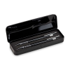 Gravírozható golyóstoll szett fém tolltartóban. Egyedi, elegáns személyre szabott ajándék ötlet. A szett egy tollat és egy töltőhegyes ceruzát tartalmaz.