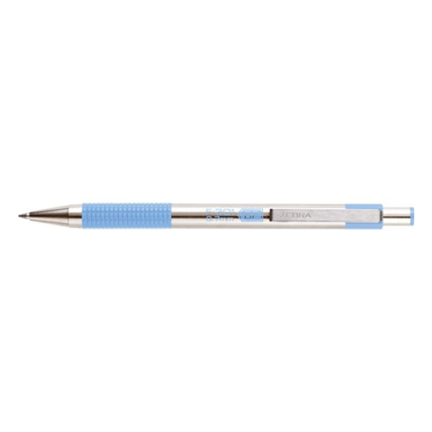 Golyóstoll ZEBRA F-301 pasztell kék fogórész kék írásszín Nyomógombos rozsdamentes acél test, Lágy tinta, Erős fém klipsz, Kényelmes fogás. Cserélhető betétes (F betét). Irodai munkához, üzleti életben dolgozóknak ajánljuk 0.7 mm golyóátmérő