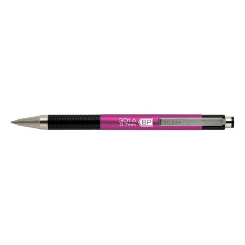 Golyóstoll ZEBRA F-301A 0,7 mm rózsa Nyomógombos golyóstoll, fém test különböző divatos színekbe, fekete bordázott markolat. Írásvastagság: 0,24 mm, Betét: F.