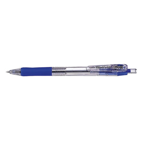 Golyóstoll ZEBRA Tapli Clip 0,7 mm kék Nyomógombos gumirozott markolat. Erős, csipeszes klipsz. Környezetbarát (69%-banújrahasznosított alapanyagokból) Diáko, irodai munkához ajánljuk. Cserélhető betétes, betét: SH, 0,5 mm/H 0,7 mm.