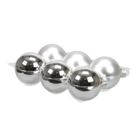 Gömb üveg 8cm ezüst fényes-matt S/6 karácsonyfadísz 1 kép