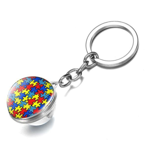 Autizmus szimbólumot ábrázoló kulcstartó, amely az együttérzést és támogatást jelképezi. Tökéletes ajándék autista gyerekeknek és családjuknak