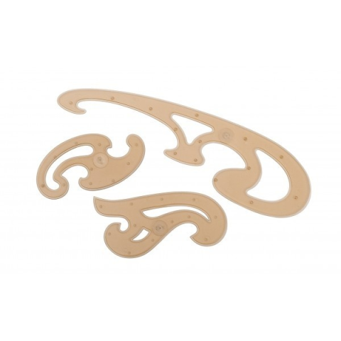 Műanyag átlátszó, 3-as méretű, görbevonalzó készlet műszaki rajzokhoz.