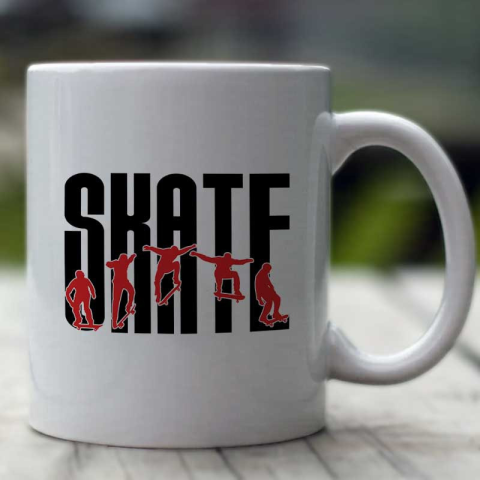 Gördeszkás bögre, Skate. Skate feliratos, gördeszkás mintás bögre, indítsd a napod gördeszkás stílusban! Kezdd a reggeled egy vagány Skate feliratos, gördeszkás mintás bögrével! Tökéletes választás mindenkinek, aki szereti a gördeszkázás szabadságát. Akár