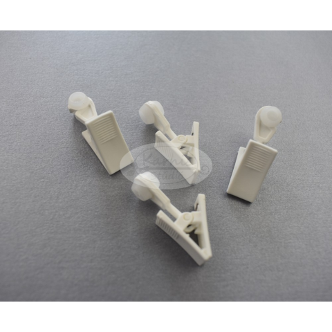 Műanyag fehé színű görgő csipesszel műanyag mennyezeti sínhez (20 db/cs.) teljes hossza: kb. 38 mm szélessége: kb. 1 cm