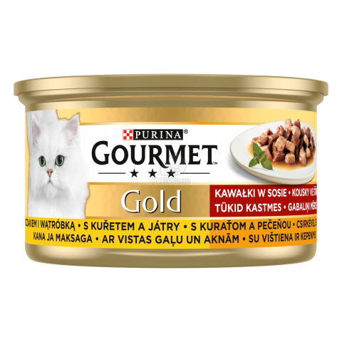 Gourmet Gold Falatok szószban 12 x 85 g lazac és csirke macskaeledel termékleírás