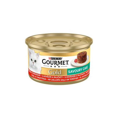 GOURMET GOLD Savoury Cake Marhával és paradicsommal nedves macskaeledel 85g macskaeledel 1 kép