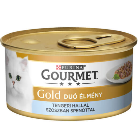 1 kép GOURMET GOLD Tengeri hallal szószban spenóttal duó élmény nedves macskaeledel