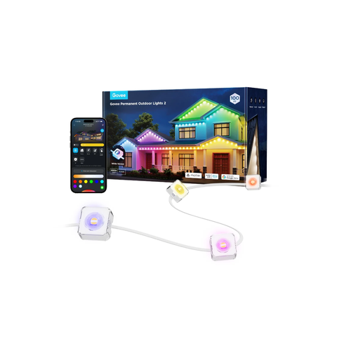 Hozzáadott anti-UV anyag IP67 vízálló lámpák IP65 besorolású vezérlődoboz IP65 besorolású adapter -4°F és 140°F (-20°C és 60°C) közötti hőmérséklet-tűrés Kibővített RGBICW Világítás A Govee Tartós Kültéri Fények 2