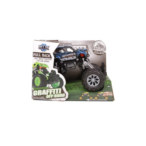 Húzd hátra, engedd el, és induljon a terepakció! A Graffiti Off-Road terepjáró egy színes, mintás, nagy kerekű járgány, amelyet a kalandvágyó gyerekek imádni fognak. A hátrahúzós motorral ellátott autó magától elindul, ha hátrahúzod és elengeded, így pillanatok alatt bejárhatja az egész terepet.
