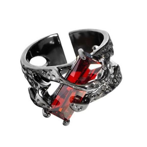 Rubin színű köves gyűrű gótikus designnal, állítható mérettel, különleges és elegáns kiegészítő minden alkalomra