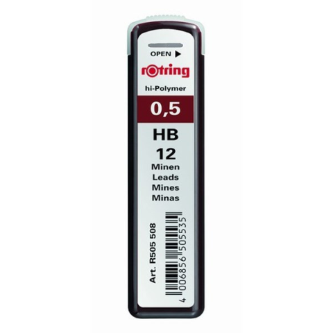 Grafitbél ROTRING 0,5mm HB Grafitbél - 0.5mm - HB Az egyik legjobb minőségű töltőceruza betét. Polimer és grafit alkotja az összetételét. Egy tubusban 12 szál grafit töltőceruza bél van.