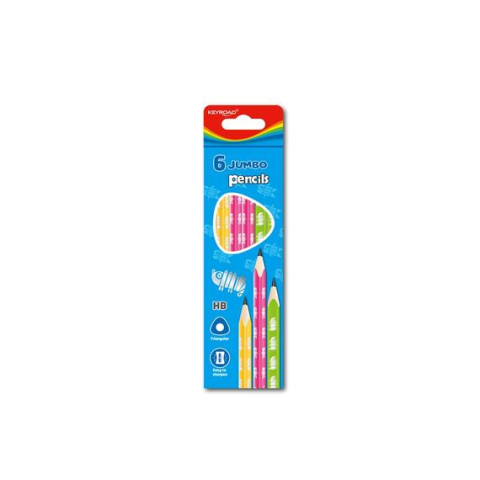 Teljes Grafitceruza HB, háromszögletű 6 db/bliszter Keyroad Jumbo vegyes színek termékleírás