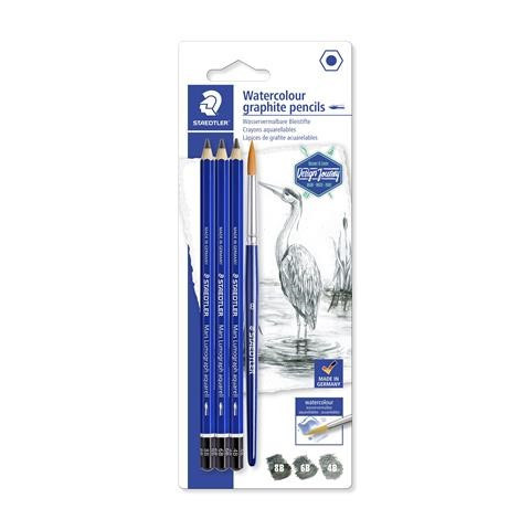 1 kép Grafitceruza készlet, akvarell, ecsettel - STAEDTLER Mars Lumograph Aquarell