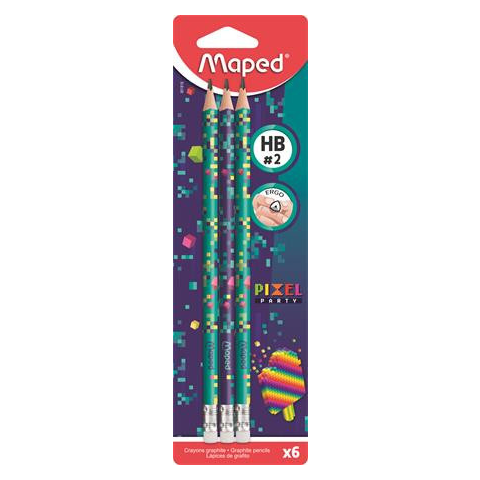 Grafitceruza radírral, HB, háromszögletű, MAPED Pixel Party, 6 darab A Maped Pixel Party kollekciójával egy retro-futurisztikus környezetbe csöppenhetünk, mely fiúknak és lányoknak egyaránt vonzó világot jelent. -famentes grafitceruza -ergonomikus,