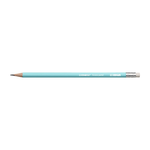 Grafitceruza STABILO Swano Pastel HB hatszögletű radíros kék Klasszikus Swano fatestű grafit ceruza. Keménység: HB. Hatszögletű test pasztell bevonattal. Testszín 6 különféle árnyalatban: sárga, zöld, lila, barack, pink, kék