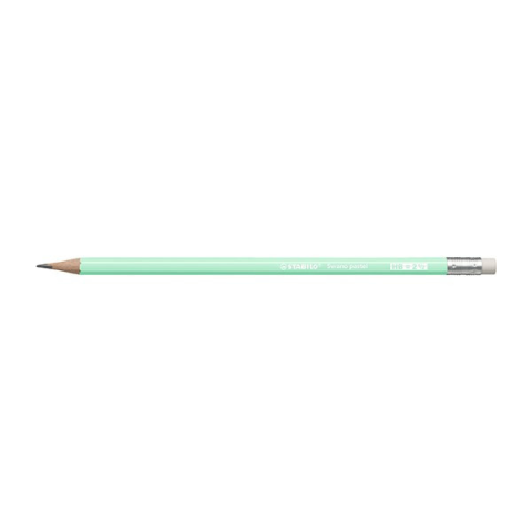 Grafitceruza STABILO Swano Pastel HB hatszögletű radíros zöld Klasszikus Swano fatestű grafit ceruza. Keménység: HB. Hatszögletű test pasztell bevonattal. Testszín 6 különféle árnyalatban: sárga, zöld, lila, barack, pink, kék